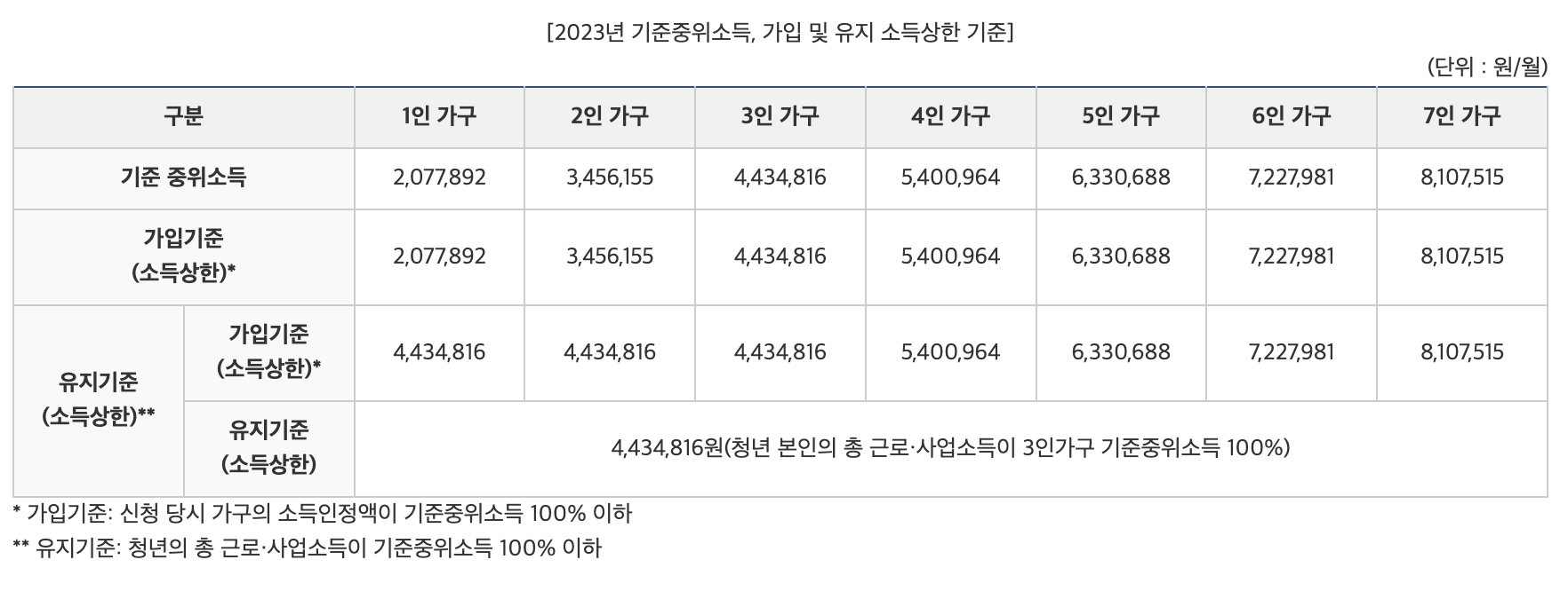 ※ 가입당시 중위소득 50% 이하로 가입했다면 가입 기간 중 소득이 50%를 초과하더라도 가입 당시 기준으로 유지 가능하다고 합니다.